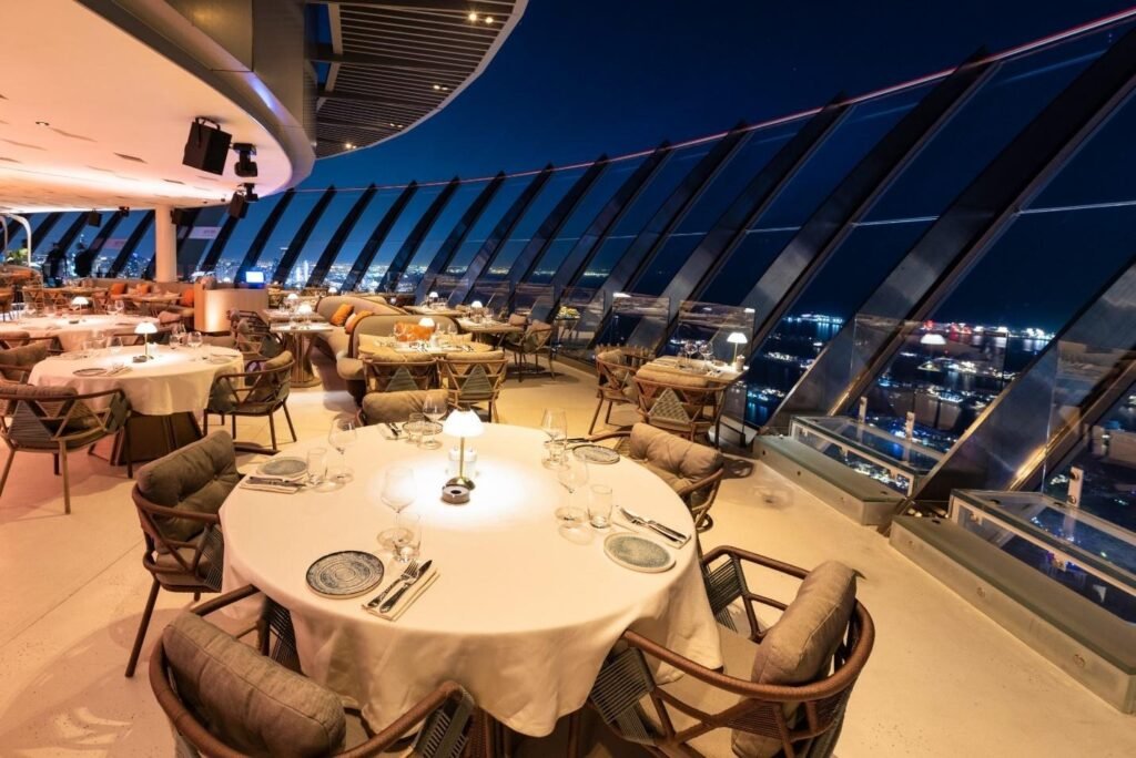 During the hotter months, advanced climate control systems keep the space comfortable without obstructing the view. Whether you sit inside or out, every table feels like a front-row seat to the skyline.