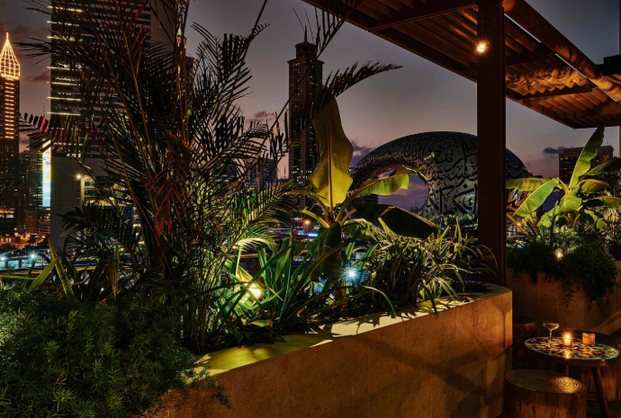 Monkey Bar Dubai combines a playful, jungle-inspired design with breathtaking, unobstructed views of the Museum of the Future. Located in the heart of the One Central district at the 25hours Hotel, it is a must-visit for young professionals, sunset seekers, and cocktail enthusiasts looking for a vibrant rooftop escape.