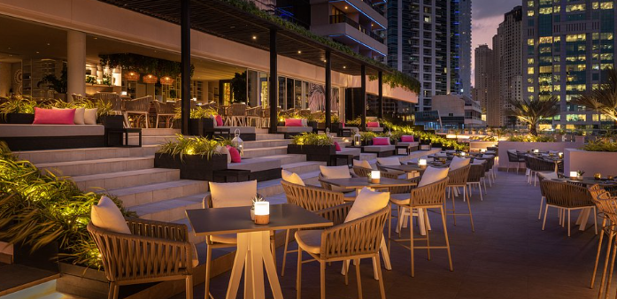 The seating arrangements are well-planned to accommodate different moods and seasonal changes. Inside, the lounge provides a temperature-controlled sanctuary with plush couches and a sophisticated bar area. This is perfect for those in the mood for a more high-energy, club-like experience while staying cool. But the real gem of the place is the outdoor terrace, especially during the UAE’s renowned “winter” dining season. You can choose from lounge chairs for a drink or dining tables for a meal. The placement of both sections is well-designed so that no one misses the sea air or the music. The transition from one place to the other is fluid, enabling you to begin with an appetizer on the terrace and move inside as the evening progresses. This is an ideal place for any weather or time of the year.