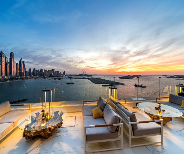 The ultimate selling point is the unique architectural layout featuring two massive outdoor terraces. One side offers the most famous view of the Marina skyscrapers in the entire city. Meanwhile, the other terrace provides a peaceful look at the sun dipping into the Arabian Gulf. You can witness a golden sunset and neon city lights show in one single evening. This ‘Best of Both Worlds’ perspective makes it the most photographed rooftop in the Middle East.