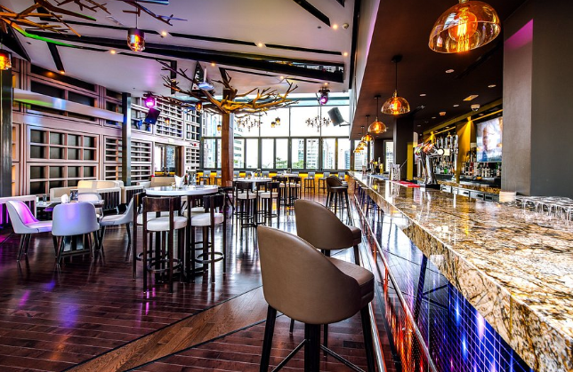 The décor of Up & Below is heavily focused on the modern and minimalist style of a lounge setting. You can expect to find a unique combination of industrial design and organic materials throughout the venue. The terrace has been outfitted with high-quality weather-resistant wood and metallic accents on the bar. You will notice oversized sofas in neutral tones that will allow patrons to stay for hours rather than simply enjoying one drink. Lighting is a critical component in transforming the setting from a sun-drenched spot during the day to a sultry spot at night. Lanterns with a warm amber glow hang from the pergolas and provide a warm and intimate setting for the patrons at the tables. This is a great contrast to the cold blue glow of the LED lighting in the bar area.