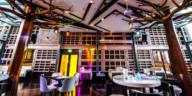 The venue provides a flexible seating plan that accommodates the dynamic seasons in the UAE. During the relatively cooler “winter” months, the extensive outdoor terrace is undoubtedly the focal point in this venue. You can select between communal high tables for a social experience or intimate lounge areas for a quiet date night. The outdoor area is quite breezy and spacious, making it the perfect spot for outdoor dining. Once summer rolls around, the indoor lounge is a cool retreat in a climate-controlled space. Large windows ensure that you do not lose the sensation of being high up in the city. The transition between both areas is very fluid, making this venue a seasonal destination throughout the year. Whether you want to feel the wind in your hair or want to escape the humidity, this venue has the perfect seats for you.